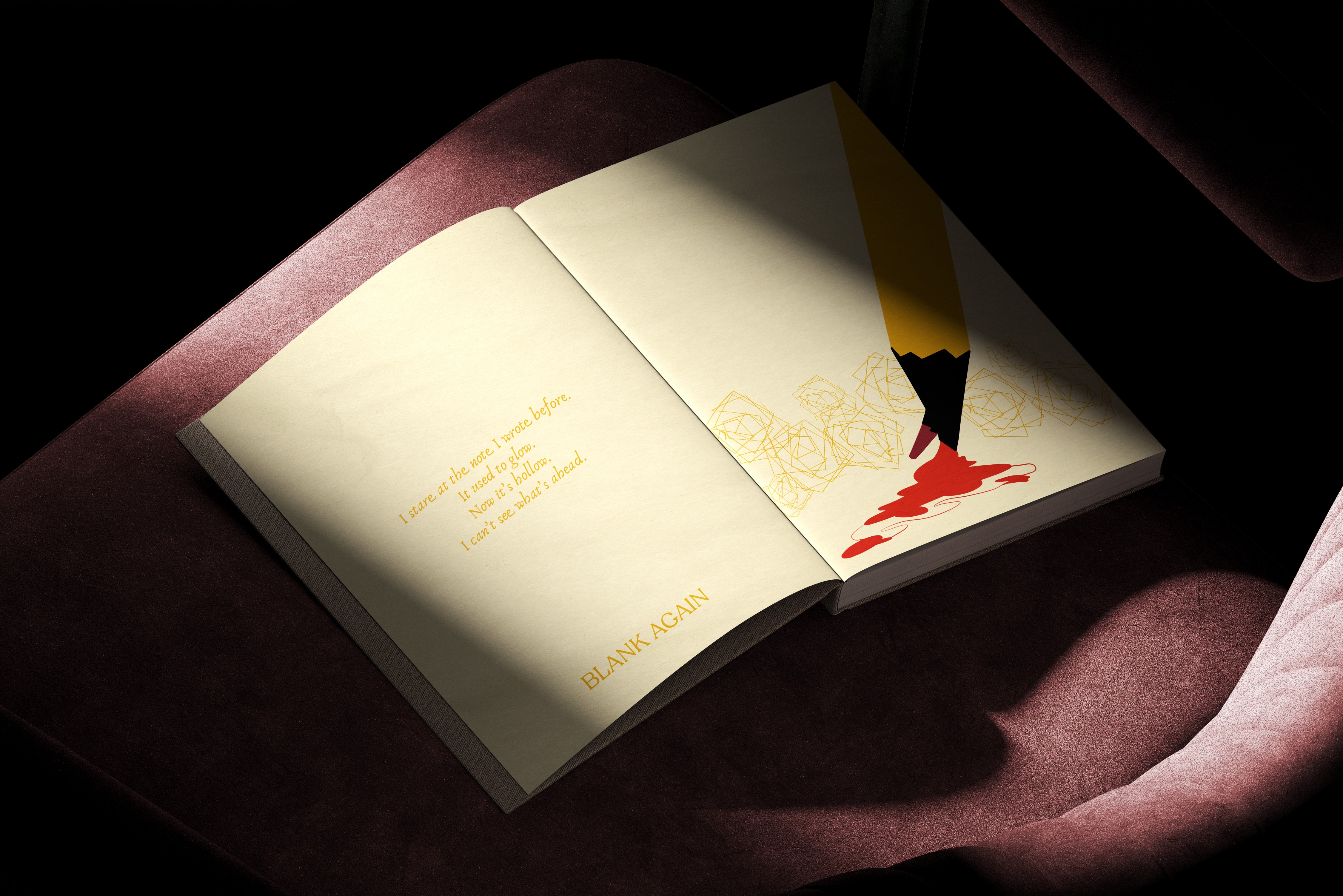 Open Heart is an illustrative poetry book that explores themes of insecurity, emotional exposure, and the quiet pursuit of hope. The project focuses on the idea of vulnerability as both a burden and a strength, presenting the heart as a central metaphor, open, unguarded, and deeply human. The visual approach combines minimal yet expressive compositions with symbolic imagery, translating internal struggles into a poetic visual language. Each spread reflects a moment of emotional honesty, capturing feelings of self-doubt, longing, and healing through carefully constructed metaphors. A restrained colour palette is used to emphasise mood and atmosphere, while subtle contrasts introduce moments of clarity and optimism. The relationship between text and image is thoughtfully balanced, allowing the poetry to guide the narrative while the illustrations deepen its emotional impact. Through this project, I explored how vulnerability can be visually communicated in a way that feels intimate and universal, creating a reflective space for the viewer to connect with their own experiences.